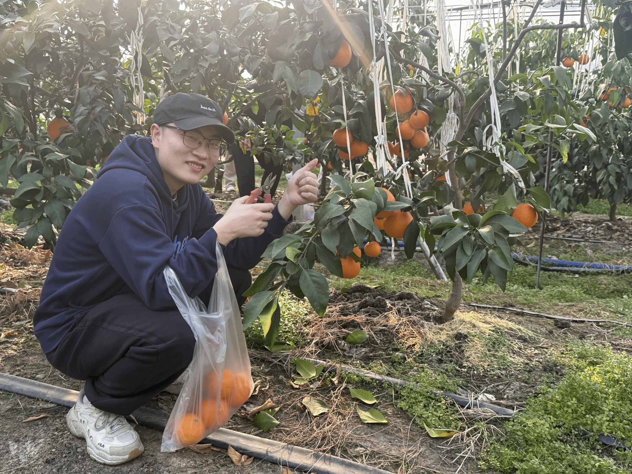 走进暖意融融的种植大棚,红彤彤、沉甸甸的“红美人”挂满枝头,果香扑面而来。师生们轻握细剪,挑选着心仪的果实。现场笑语盈盈,老师们卸下了工作的忙碌,沉浸式感受到田园惬意;学生们跳出实验室的方寸天地,在亲手劳作中体悟“一分耕耘,一分收获”的劳动真谛。